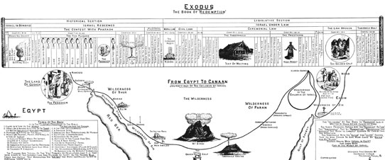 The next great event in their history was the Exodus. When the time for their deliverance from Egypt came, God weaned them by increasing the hardness of their lot, and when they cried to God He sent Moses to deliver them. Within a year after their escape from Egypt the Law was given, the Tabernacle built, a sacrificial system of worship inaugurated and the "Jewish Commonwealth" set up. But when at the end of the year they reached Kadesh Barnea and refused to go up and take possession of the Land, God punished them by compelling them to wander for 40 years in the Wilderness, where they were miraculously clothed and fed, and were divinely guided by the "Pillar of Cloud and Fire."